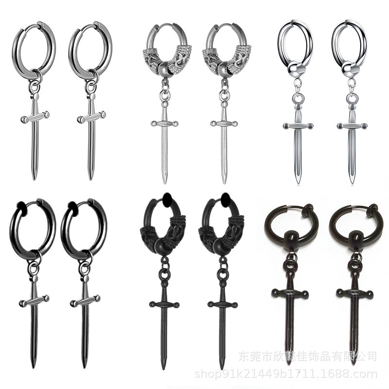 Cross-border stainless steel earrings personalized hip-hop sword-shaped ear clip earrings trendy men's earrings jewelry