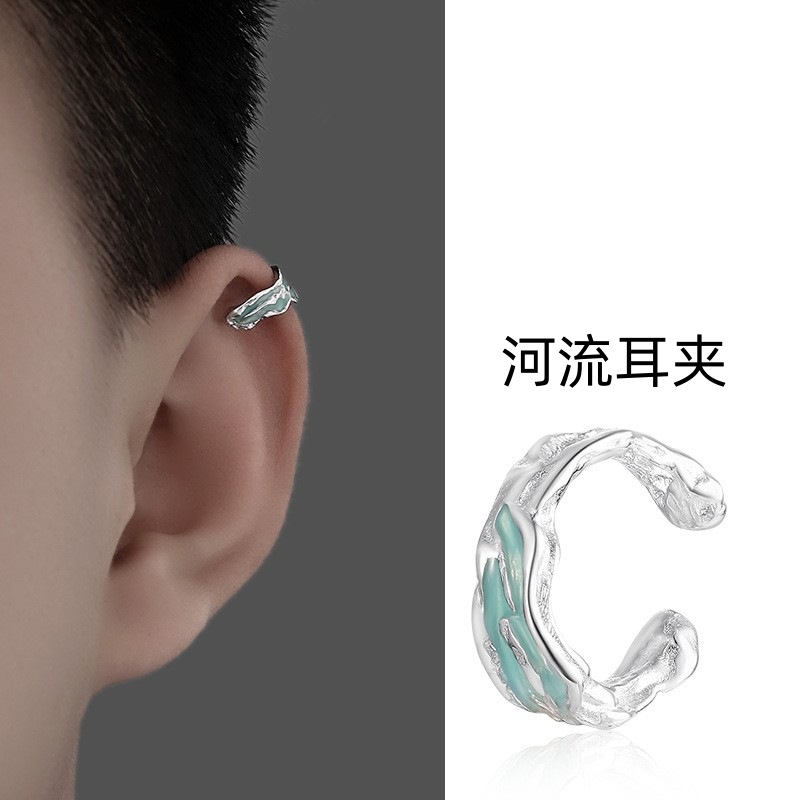 s925 silver-plated earless ear clip men's high-grade ear bone clip single niche design fake earrings trendy men's earrings
