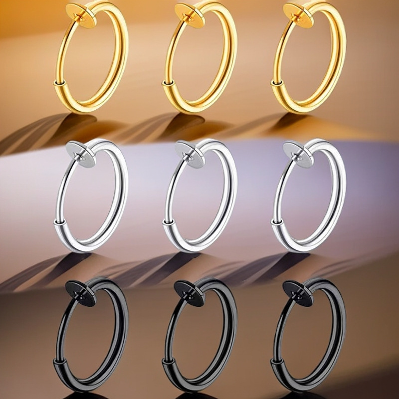 European and American Simple Circle Ear Clip Trendy Men's Titanium Steel Round Earrings Ear Clip Ear Jewelry Factory Outlet