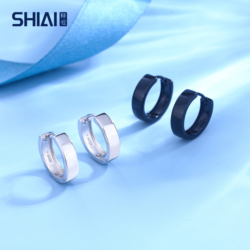 SHIAI Japanese and Korean Fashion Hip Hop Fashion Men's Fashion Women's Earrings S925 Sterling Silver Simple Personality Versatile Sterling Silver Earrings