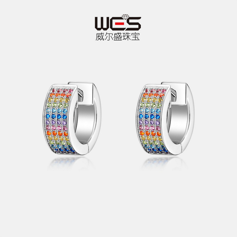 Cross-border European and American style Circle Rainbow earrings S925 silver inlaid four-row colored diamond ear buckle men's and women's fashion light luxury hip-hop