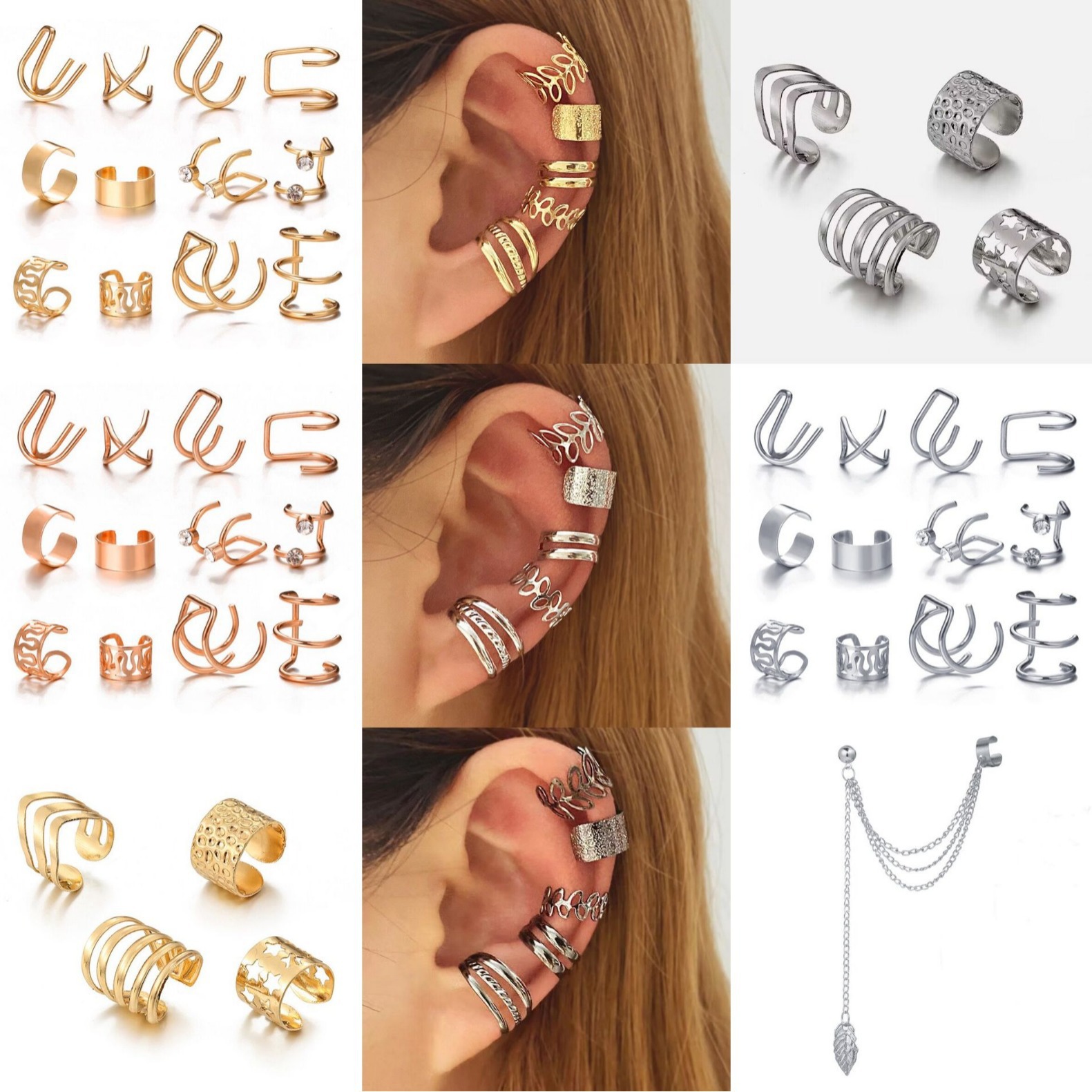 European and American Fashion New No Piercing Ear Clip Creative Set Generous Casual Alloy Earrings Jewelry Wholesale