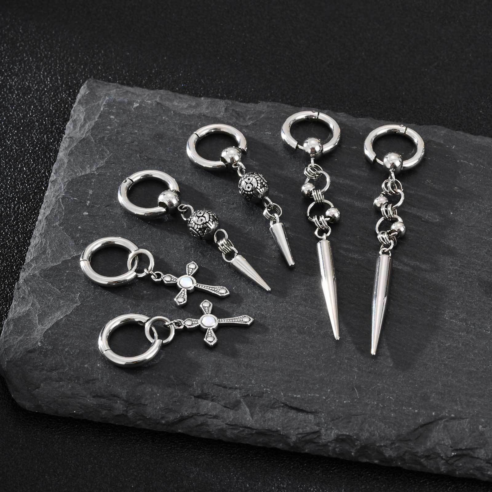 Cross-Border Jewelry Punk Trendy Stylish Versatile Stainless Steel Cross Geometric Tapered Earrings Men's Ed-900