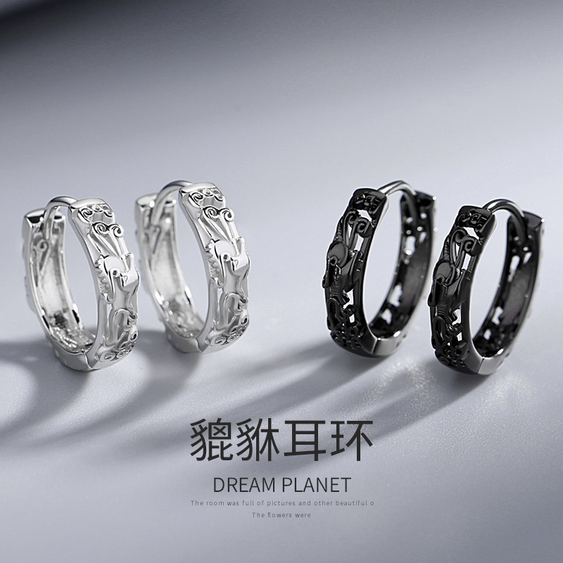 Pixiu Earrings for Men, Single Stud, Unique Trendy Ins Style, Student Hip-Hop Accessories, Fashionable Hollow Pixiu Ear Cuffs