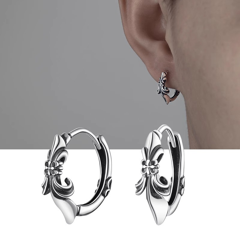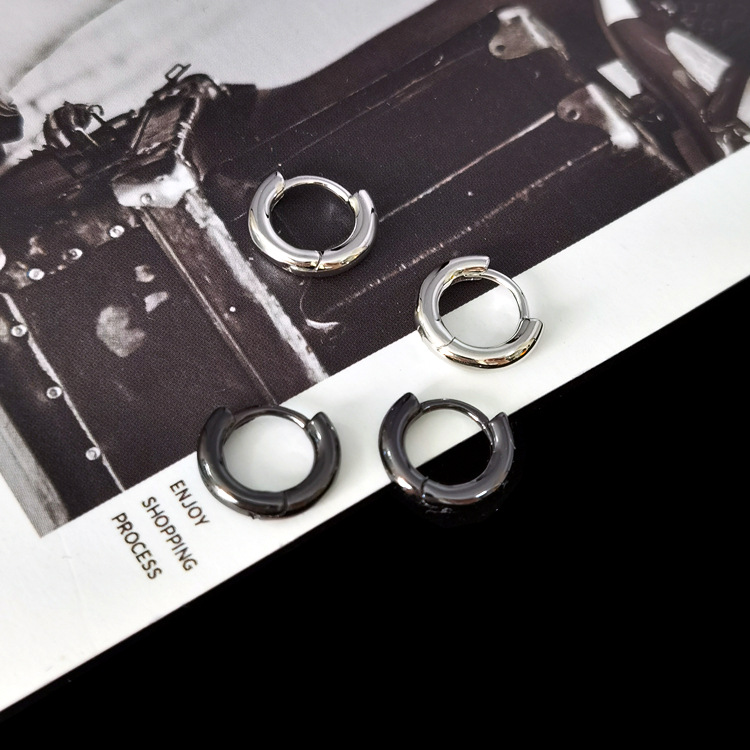Earrings Men's High-end Feeling ruffian Handsome Style Silver Pigment Ring Ear Ring Men's and Women's Trendy Color-free Titanium Steel All-match Ear Buckle Earrings