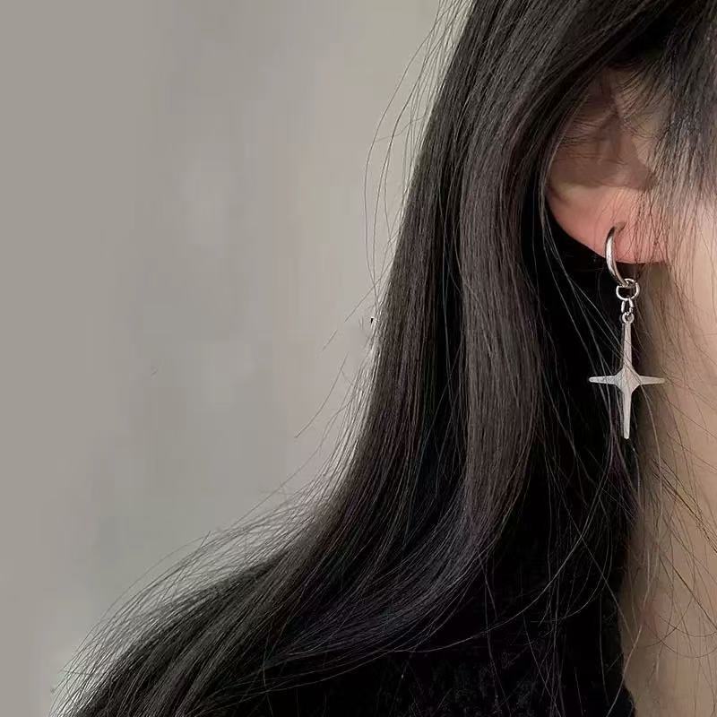 Korean Version Niche Design Cross Star Earrings for Men European and American Trendy Personality Hip-Hop Fashion Simple Versatile Earrings