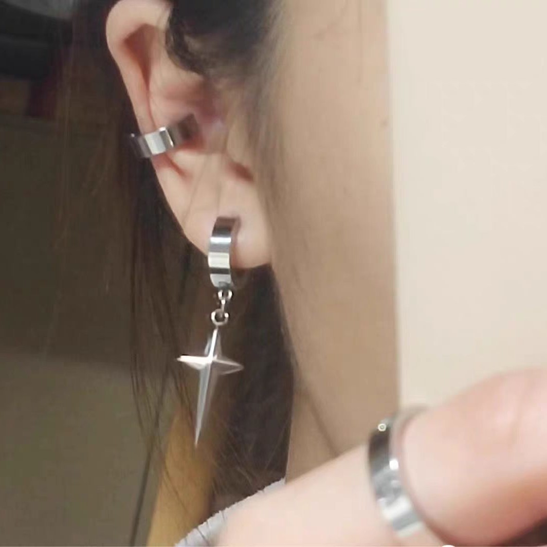 Titanium Steel Star Cross Earrings for Women, Simple Niche Design Ear Clips Without Pierced Ears, Men's Personalized High-End Earrings
