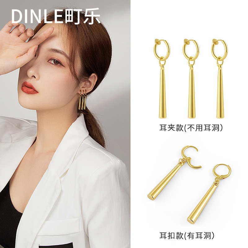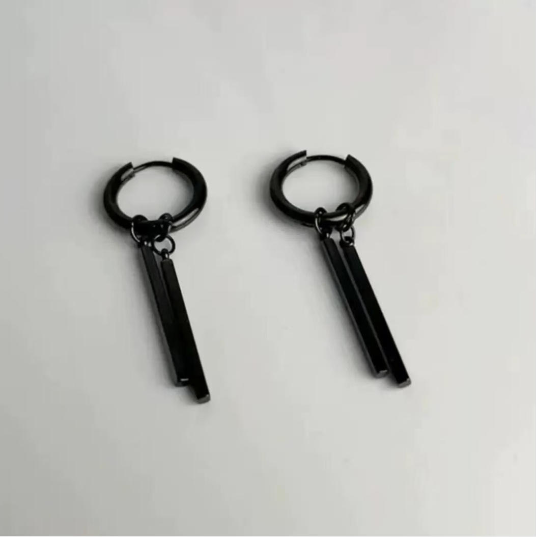 Popular Stainless Steel Double Stick Rectangular Men's Niche High-End Simple Jewelry Trendy Pendant Earrings Factory Direct Delivery