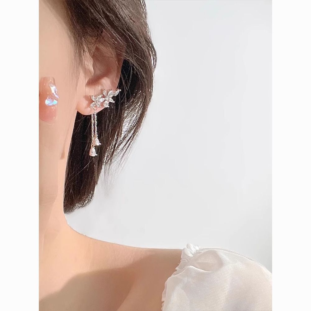 Super Flash Elf Ear Bone Clip Design Without Pierced Ears for Women High-End Flower Tassel Earrings Autumn and Winter Earrings