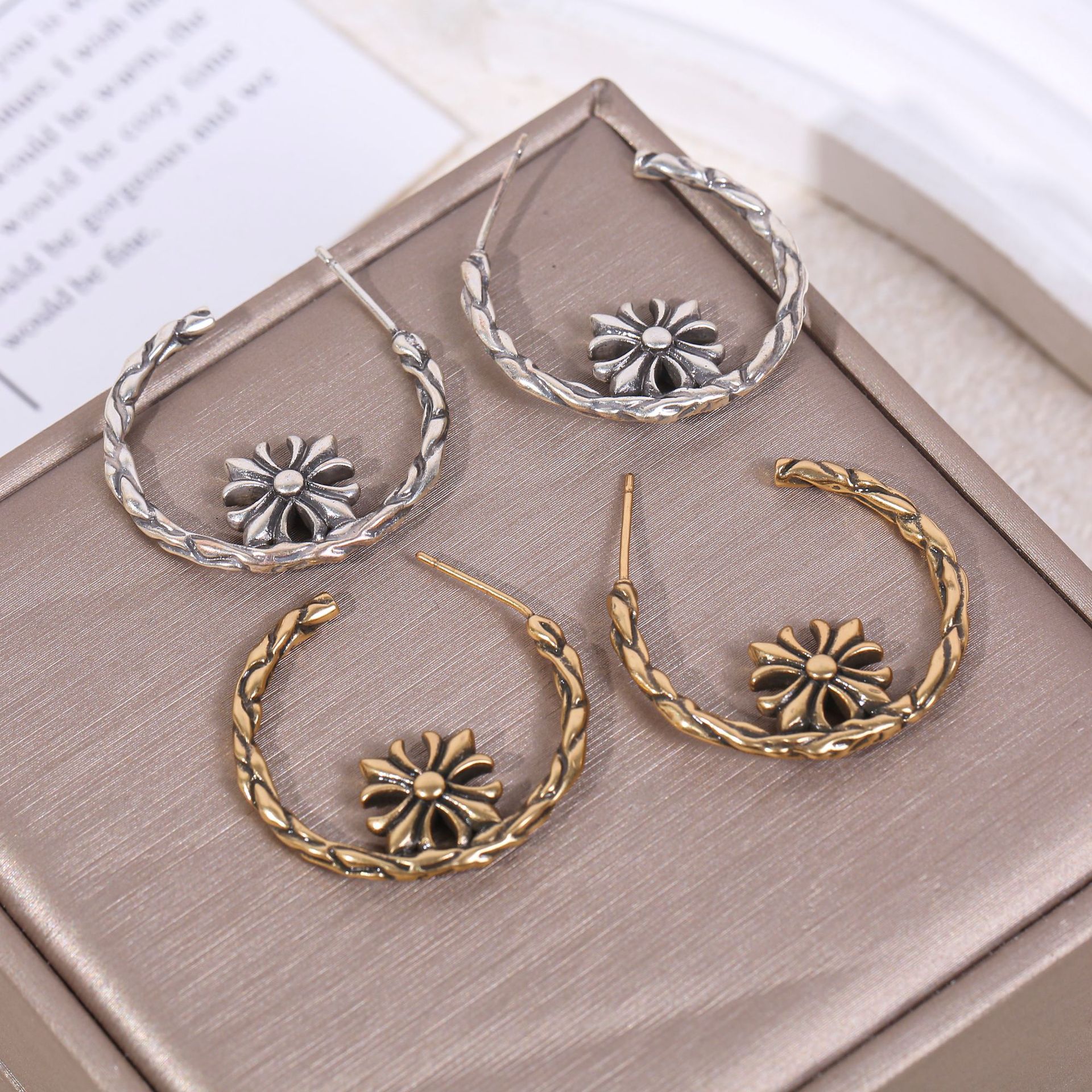 Trendy Crow Cross Flower Earrings for Men and Women French Fashion Retro Vintage Punk Hip-Hop Antique Earrings Wholesale