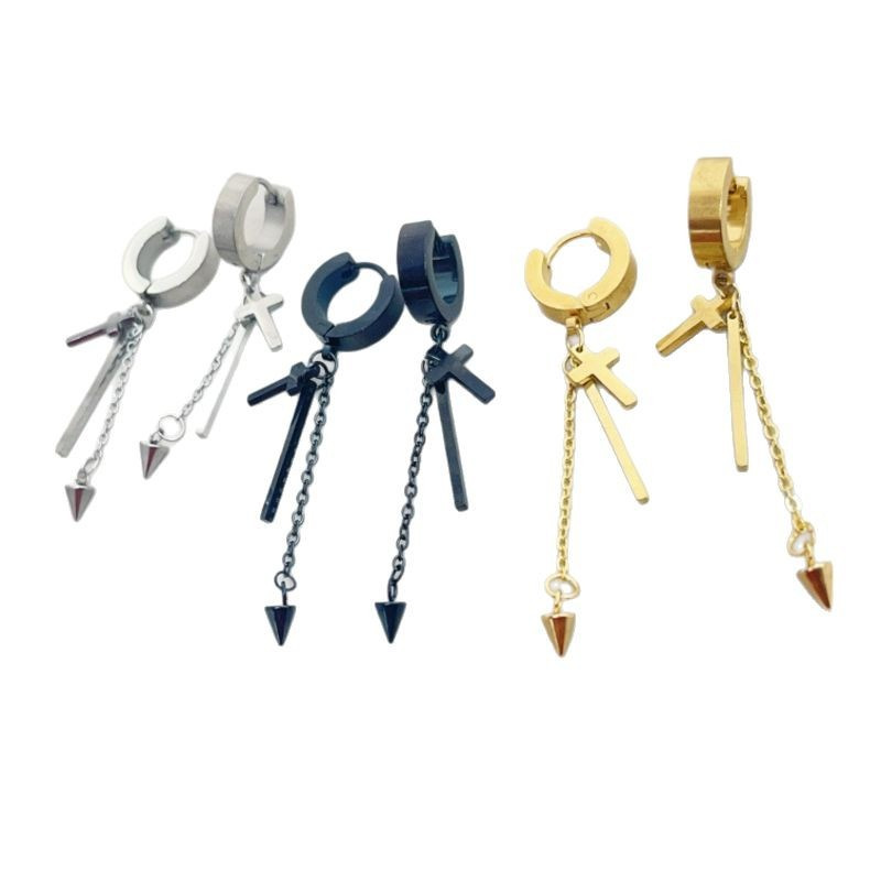 Japanese and Korean Trendy Men's Trendy Women's Earrings Personalized Cross Bar Chain Titanium Steel Earrings