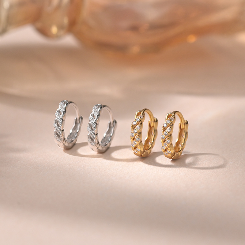 S925 Silver Earrings for Men and Women, Minimalist Style Ear Cuffs, High-End Geometric Diamond-Encrusted New Earrings Be0277