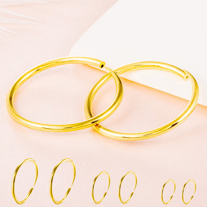 20Mm-40Mm Gold-Plated Earrings for Women and Men, Simulated Gold-Plated Glossy Aperture Earrings
