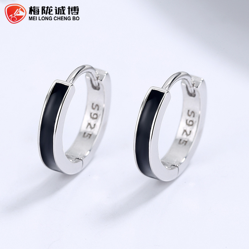 925 Sterling Silver Enamel Earrings Korean Style Design Personality Trendy Men's Black Drop Glue Ear Buckle Earrings Women's ins Cold Style