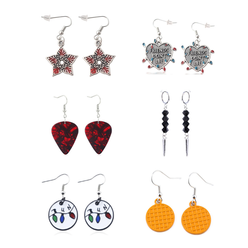 Strange story earrings guitar pick waffle bulb five-pointed star suit collection foreign trade cross-border