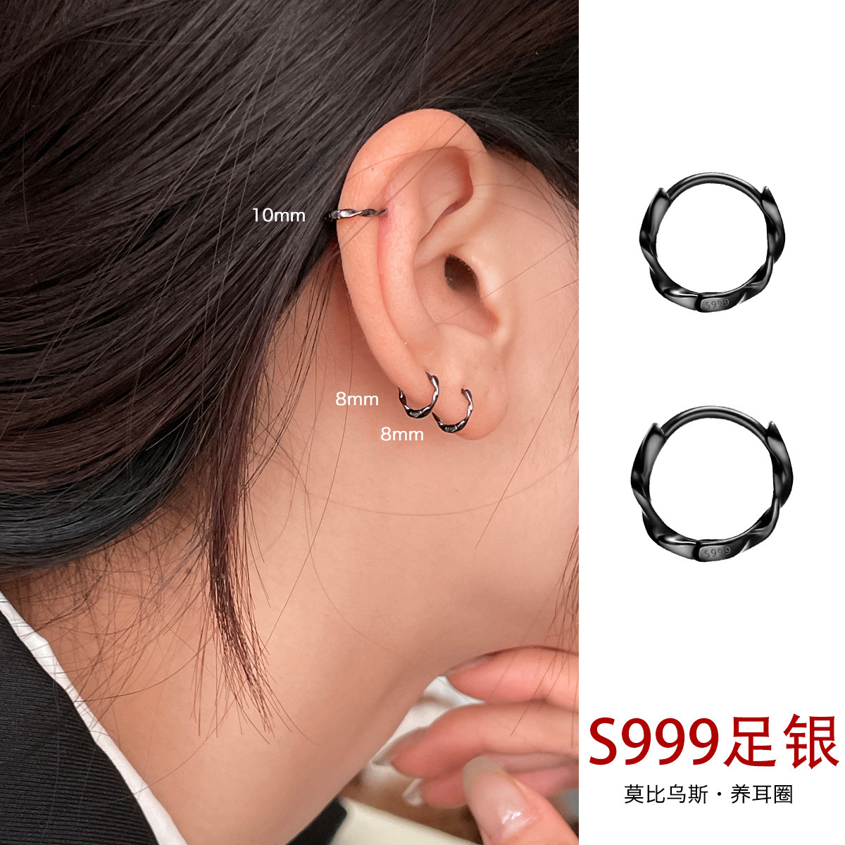 999 Sterling Silver Plain Ring Moebius Earrings Women's Niche High-end Sense Neutral Ear Ring Men's Simple Fashion Earrings