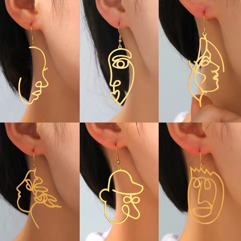 Korean style accessories facial makeup abstract expression pendant line face 304 stainless steel earrings pendant hot selling