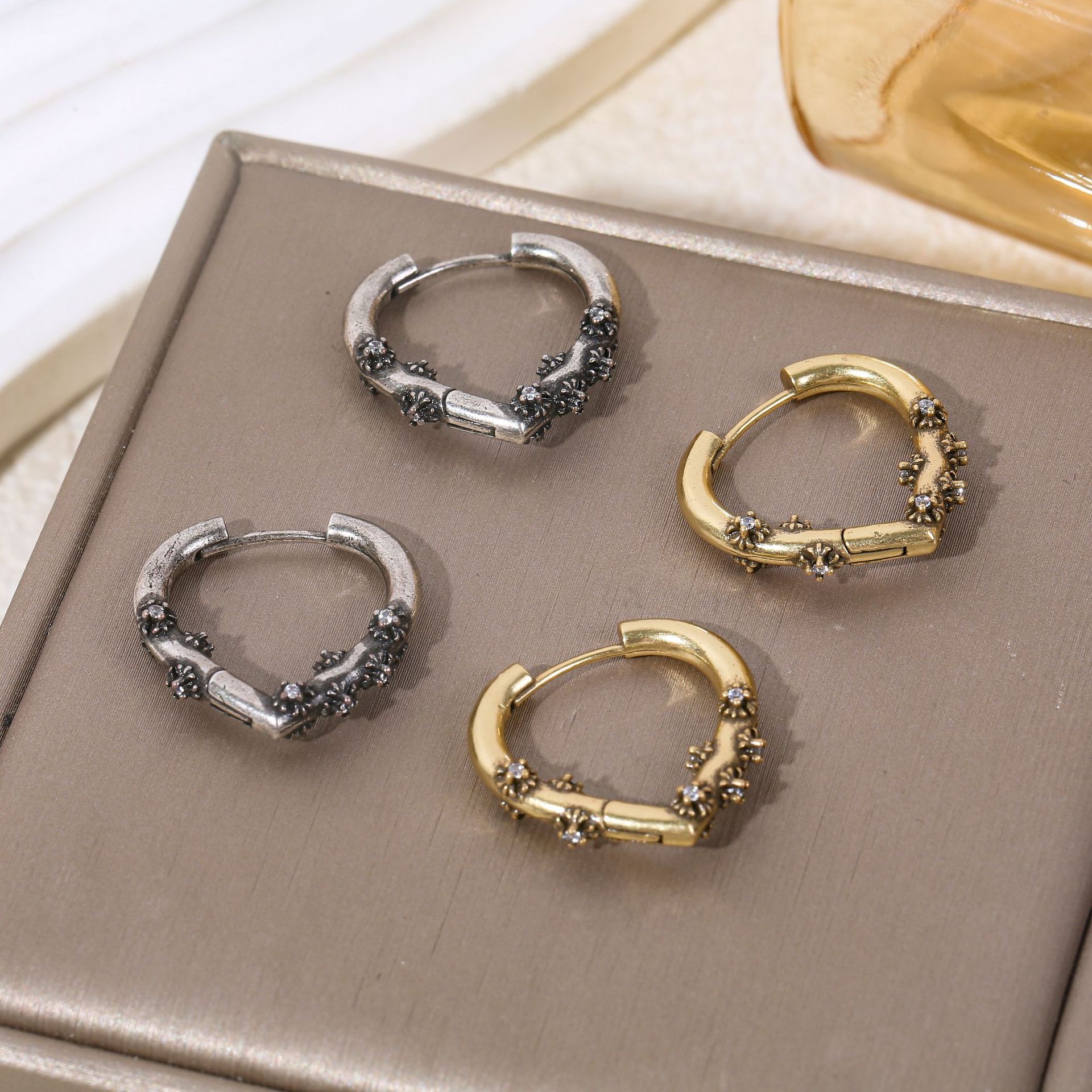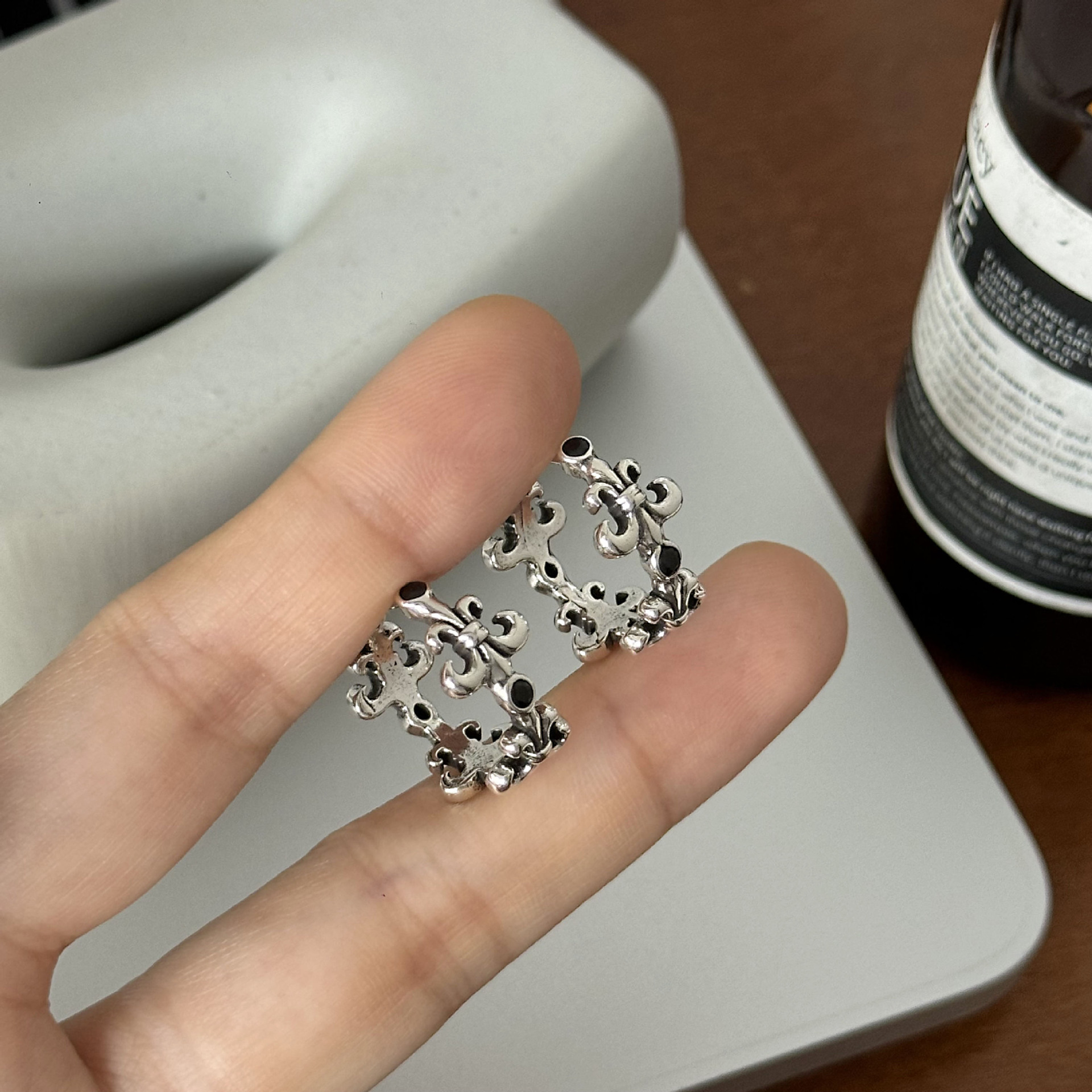 High-grade Cross Earrings Men's Light Luxury Vintage Hollow Earrings Fashion Personality All-match Ear Ring Trendy Jewelry