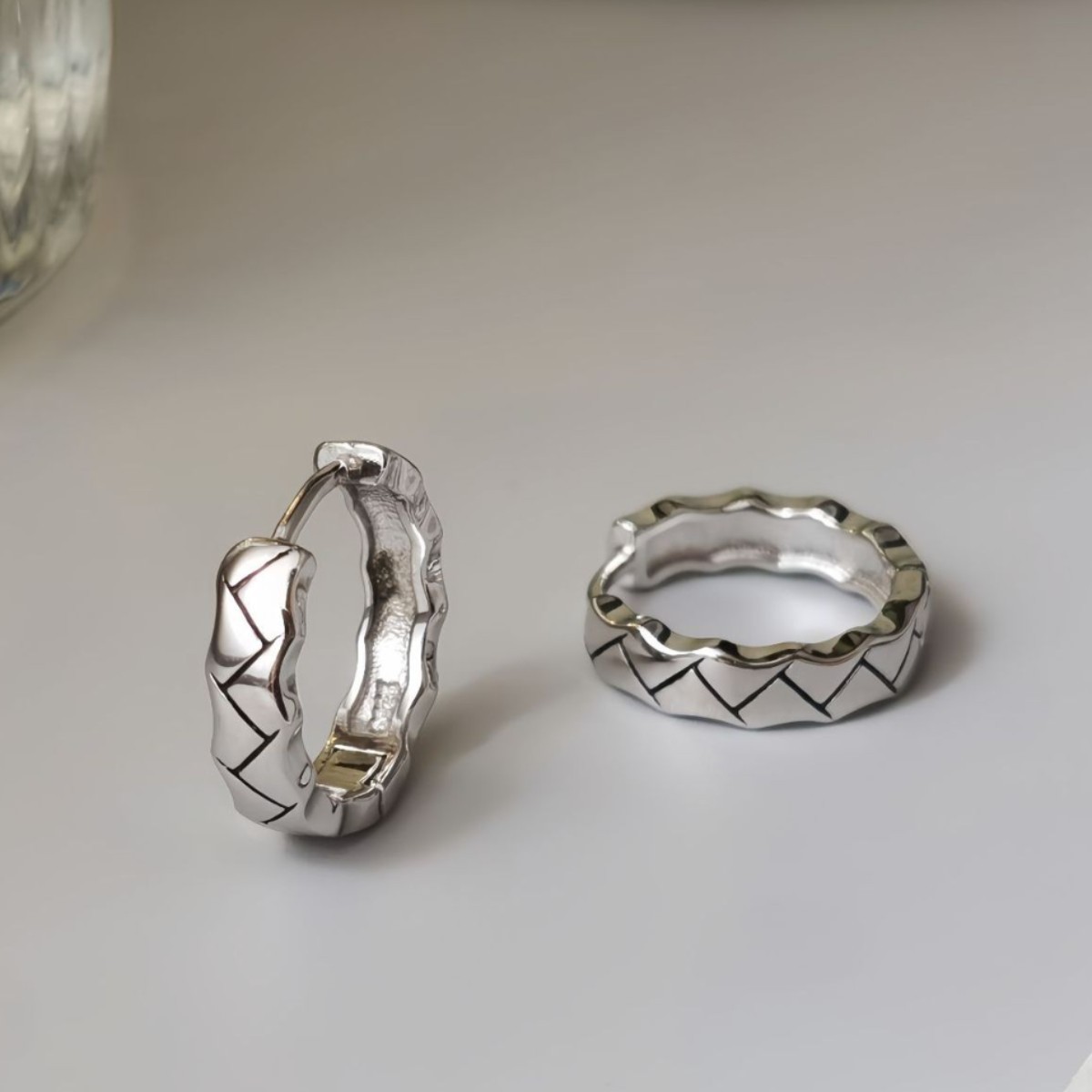 Neutral Style Earrings, All-Over S925 Silver Earrings, Boys Can Wear Accessible Luxury Design, Black Oil-Waved Lines