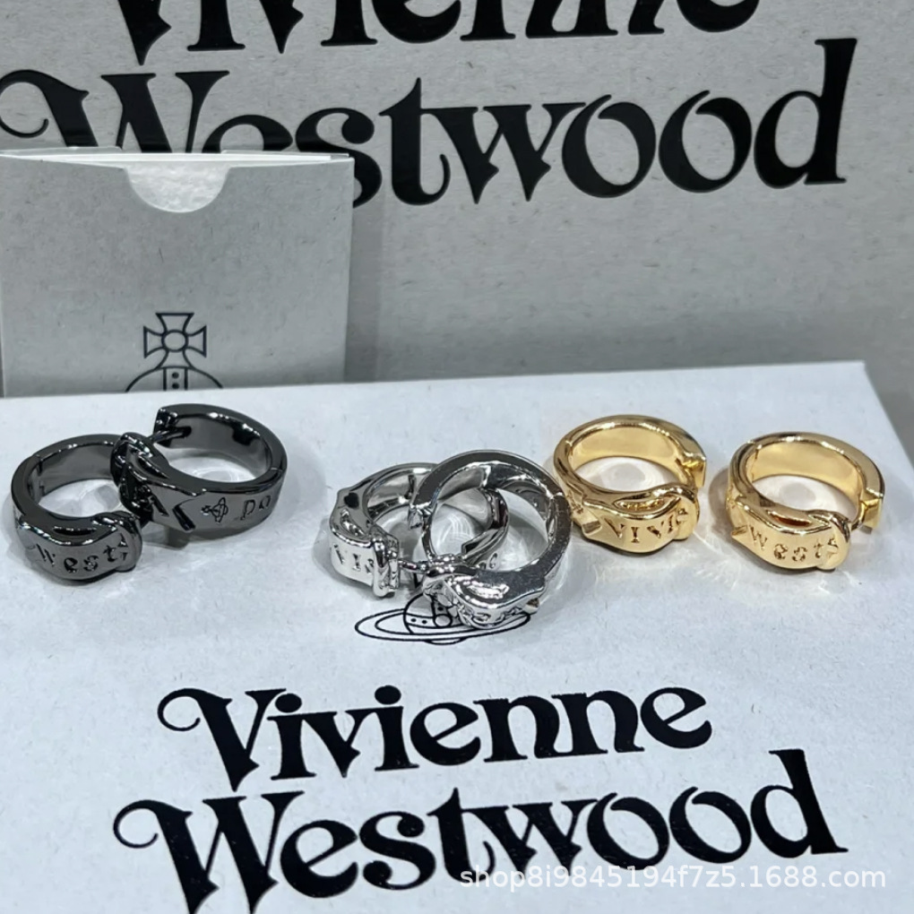 Empress Dowager Vivian New Belt Buckle Circle Letter Saturn Earrings High Sense Elegant Men's and Women's Earrings