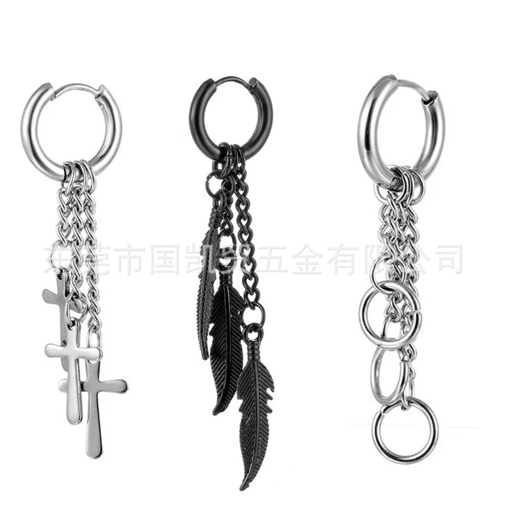 Men's Cross Stainless Steel Earrings Tassel Chain Leaf Accessories Earrings Earrings Trendy Men's Earrings Small Wholesale