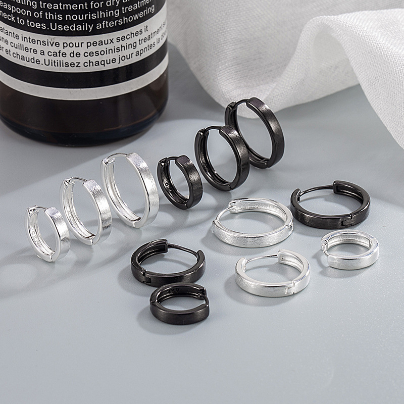 New Men's Niche Light Luxury High-end Fashionable Women's Plain Ring Wire-drawing Ear Buckle Round Ear Ring Earrings European and American Simple Earrings