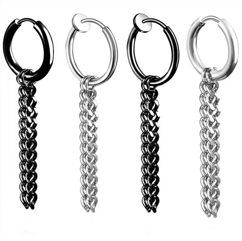 Trendy Hip-Hop Stainless Steel Double Chain Earrings Fashion Short Tassels Earrings Spring Ear Clip Trendy Men's Earrings