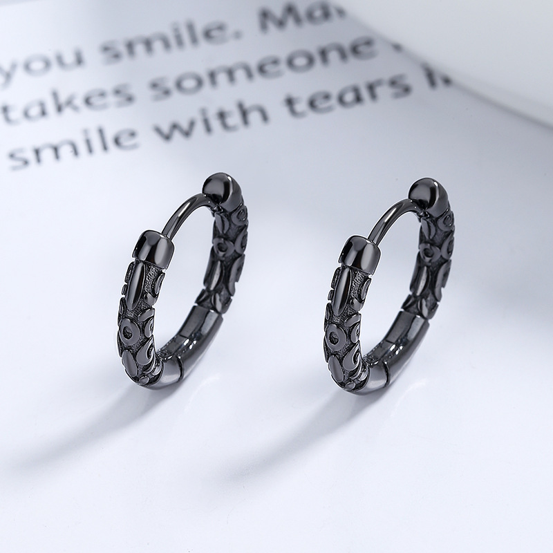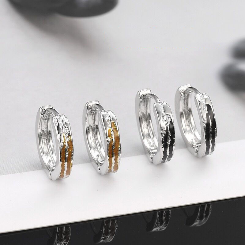 Gold Hoop Black Earrings 925 Sterling Silver Trendy Men and Girls Simple ins Dark Style Ear Buckle Loop Korean Ear Jewelry