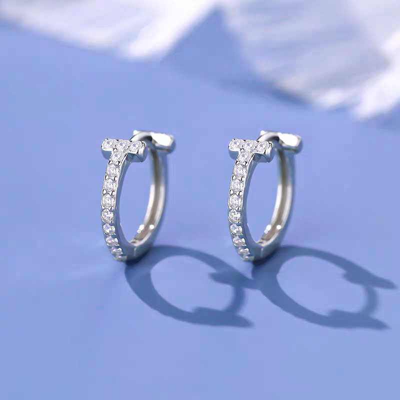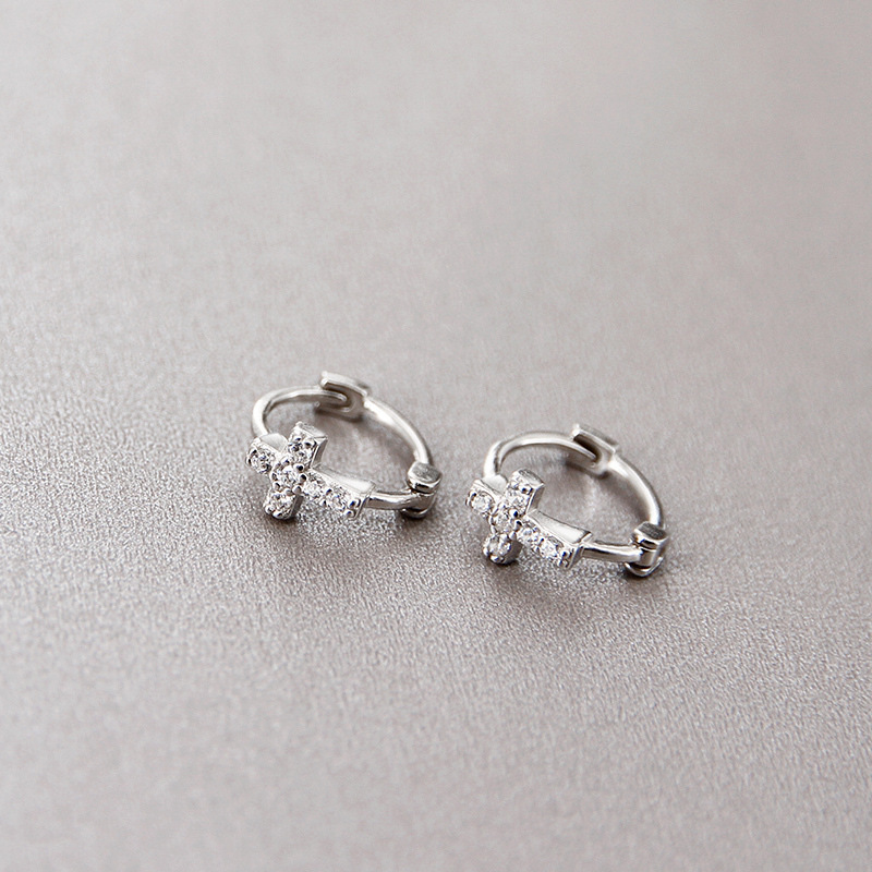 Cross Ear Buckle Women's Ear Ring Internet Celebrity Elegant Earrings S925 Sterling Silver Zircon Distinctive Men's Simple Ear Bone Nail Earrings