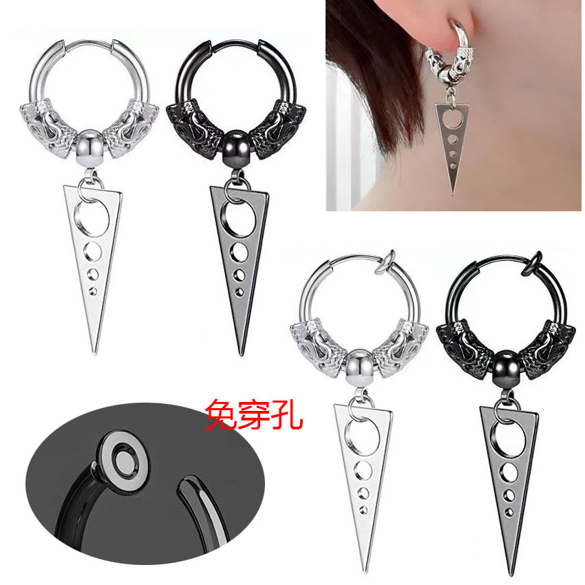 Vintage Xizang Dragon Triangle Pendant Earrings Ear Buckle Piercing-free Ear Clip Distinctive Fashion Trendy Men's Earrings Korean