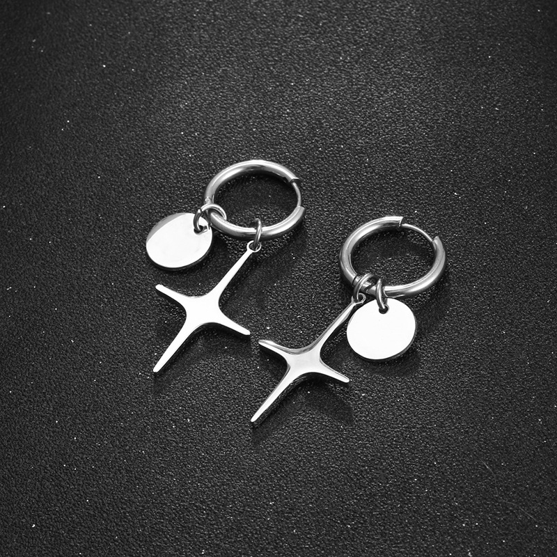 Cross-Border New Stainless Steel Snowflake Earrings, High-End Trendy Men's Punk Style Earrings, Personalized Trendy Couple Earrings