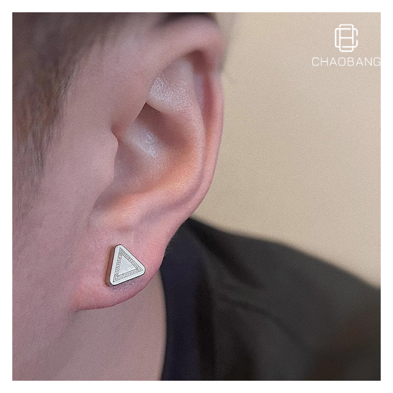 Korean Style Dark Pattern Triangle Ear Clip Men's Stainless Steel All-match Distinctive Light Luxury Niche High-end Sense Accessories