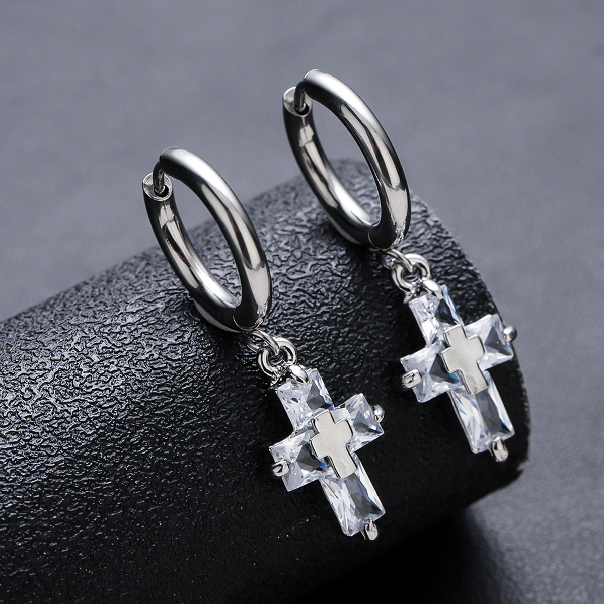 Cross Hao Shi Titanium Steel Earrings for Men, Trendy, Non-Fading, Fashionable, Simple and High-End Accessories for Women, Versatile Cross-Border Jewelry