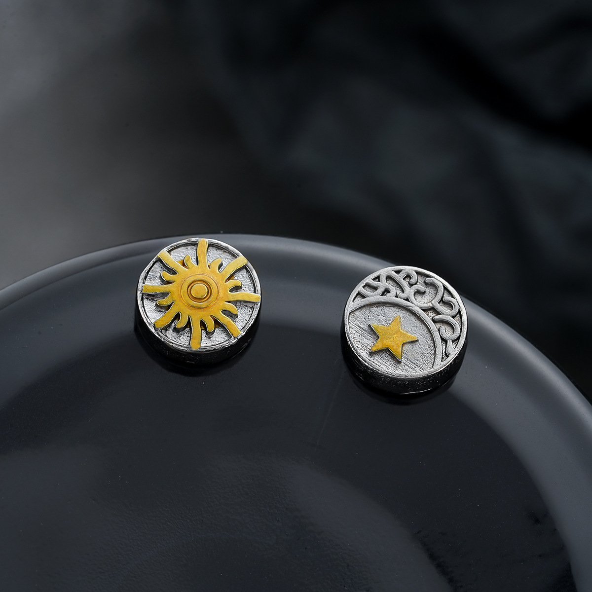 Sun Moon Magnetic Ear Clip Men's Personality Design Niche Retro Distressed Earrings Women's High-end All-match Jewelry