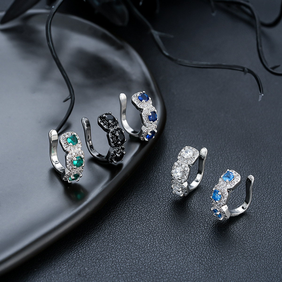 Diamond-Encrusted Iris Ear Clips for Men Without Pierced Ears, Fashionable Cross Ear Bone Clips for Women, High-End Zircon Ear Jewelry
