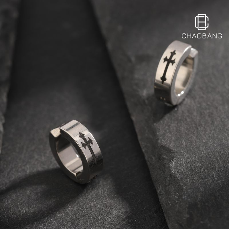 Cross Titanium Steel Ear Clip Men's Trendy Korean Style Ear Buckle All-match Non-perforated Ear Ring Duty Hot-selling Accessories