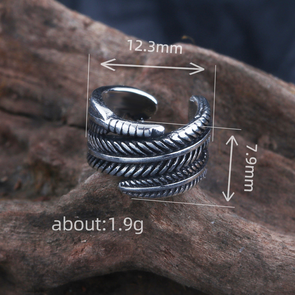 Vintage Silver Feather Ear Clip Men's Trendy Personalized Anti-Thai Silver Single Earrings Fashion Men's Ear Clip