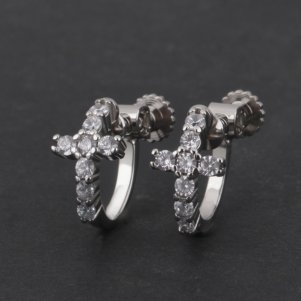 Full Diamond Cross Ear Clips for Men, Trendy and Cool Style, Diamond Zircon Earrings for Women, Fashionable and Personalized Screw Earrings