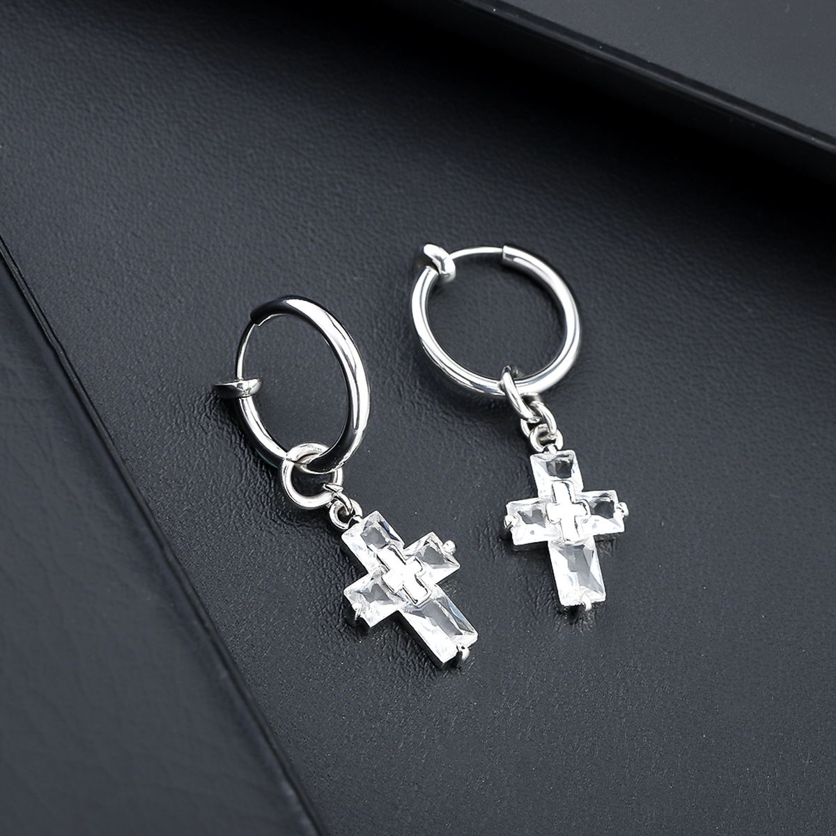 Zircon Cross Ear Clip Men's Trendy Internet Celebrity Couple Square Diamond Pierced Earrings Women's High-End Titanium Steel Jewelry
