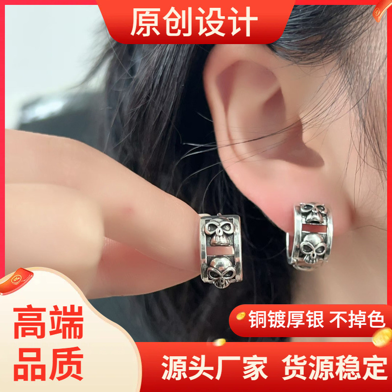 European and American New Design Sense French Skull Earrings Personalized Punk Men's Exaggerated Retro Earrings High Earrings