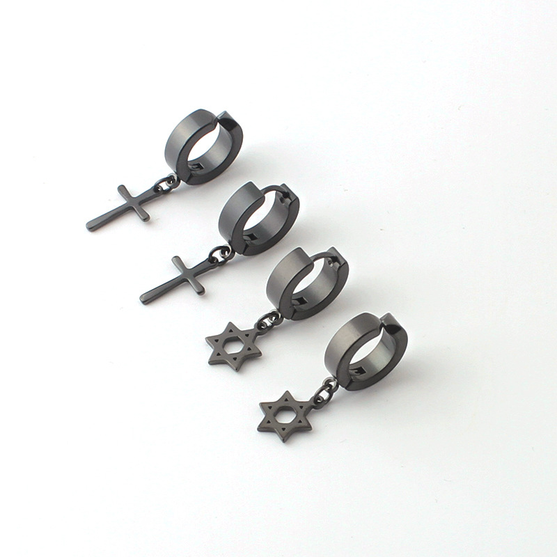 Men's cross earrings fashion stainless steel ear buckle single sex tide black ear jewelry without ear hole ear clip wholesale