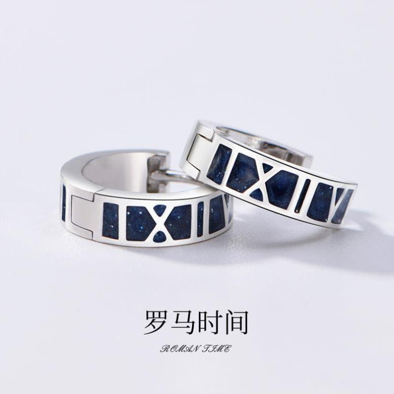 Roman Time Ear Buckle Men's Trendy Neutral Simple Single Earrings Blue Drop Glue Digital Earrings Source Factory