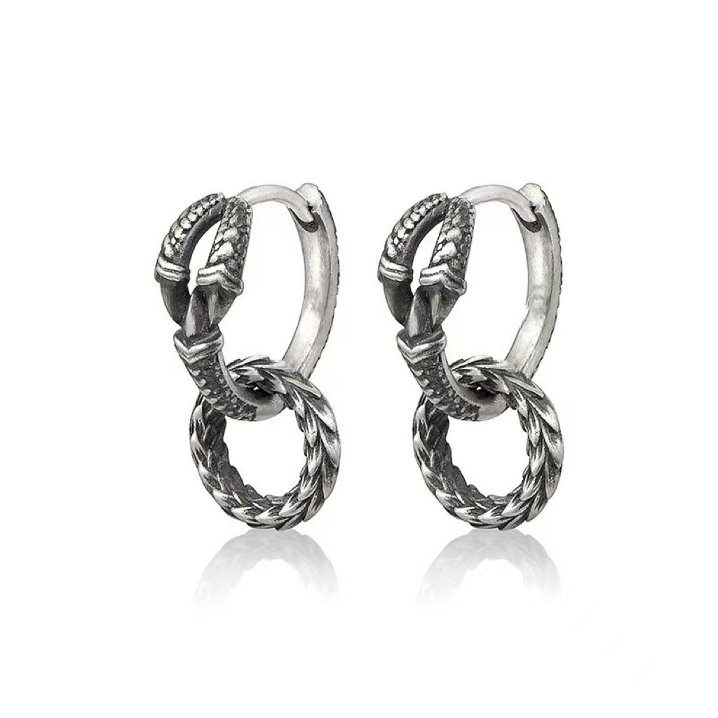 Vintage Dragon Claw Earrings for Men Trendy Personality Creative Double Hoop Ear Cuffs Fashion Versatile Cool Imitation Thai Silver Single Earring