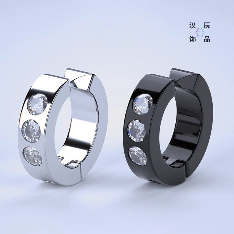 Diamond-embedded titanium steel ear clip men's personality hip hop high sense with ear hole-free non-fading all-match Ruan handsome earrings couple style