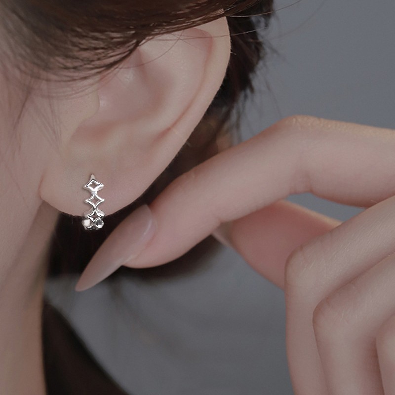 Japanese and Korean-style s925 silver square earring earrings men's snap-on wide-face Square personality easy to wear without removing earrings for women