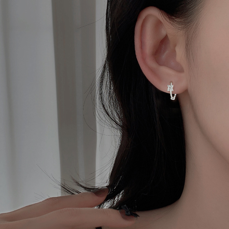 Four-leaf Clover Ear Buckle Simple Socialite Style Classic Diamond Ear Ring Male Temperament Four-petal Flower Lucky Grass Flower Earrings