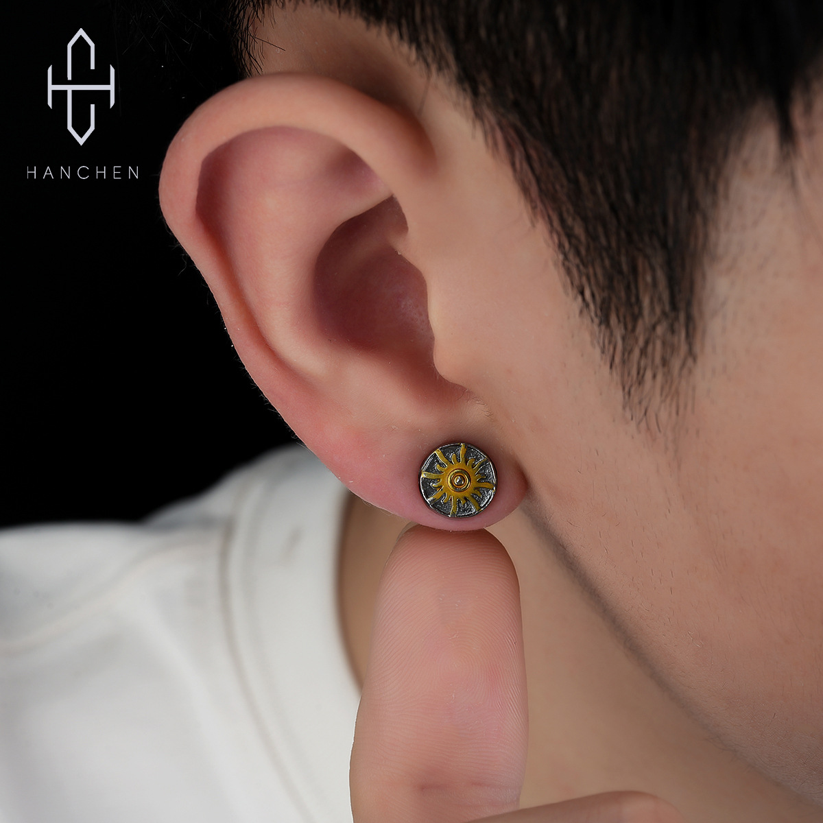 Xiangyun Earrings Men's Trendy Personality Niche Design Sense Accessories Retro Reffi Handsome Hip-Hop Earrings All-Match High-Level Sense Accessories