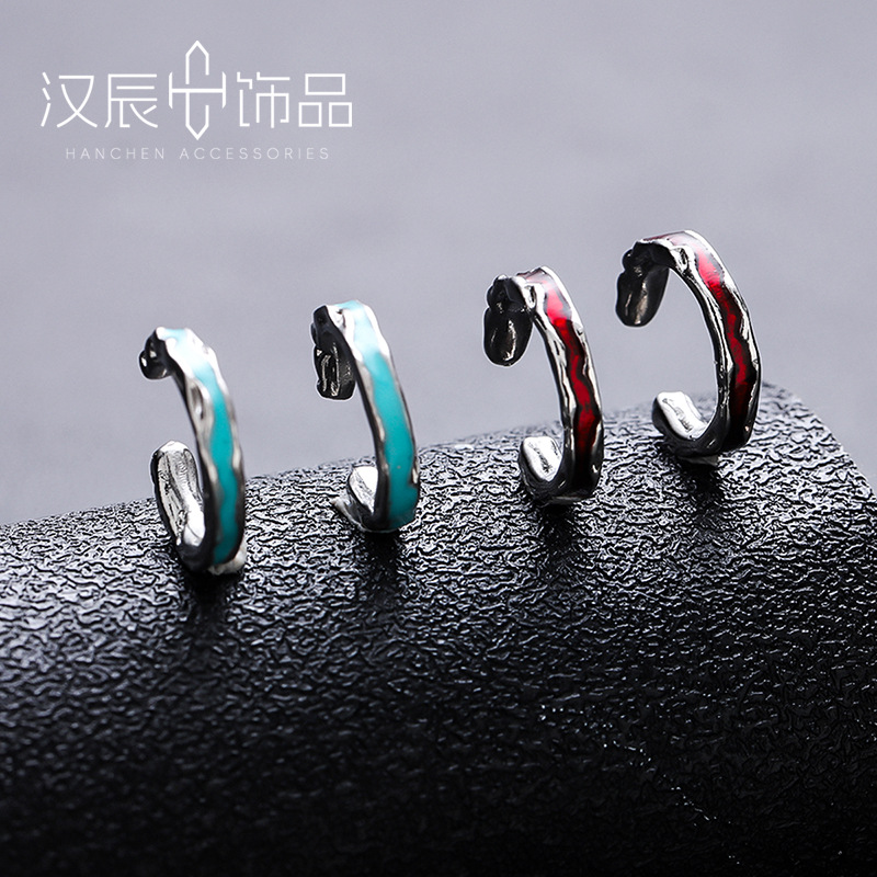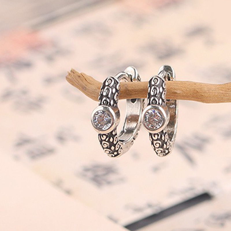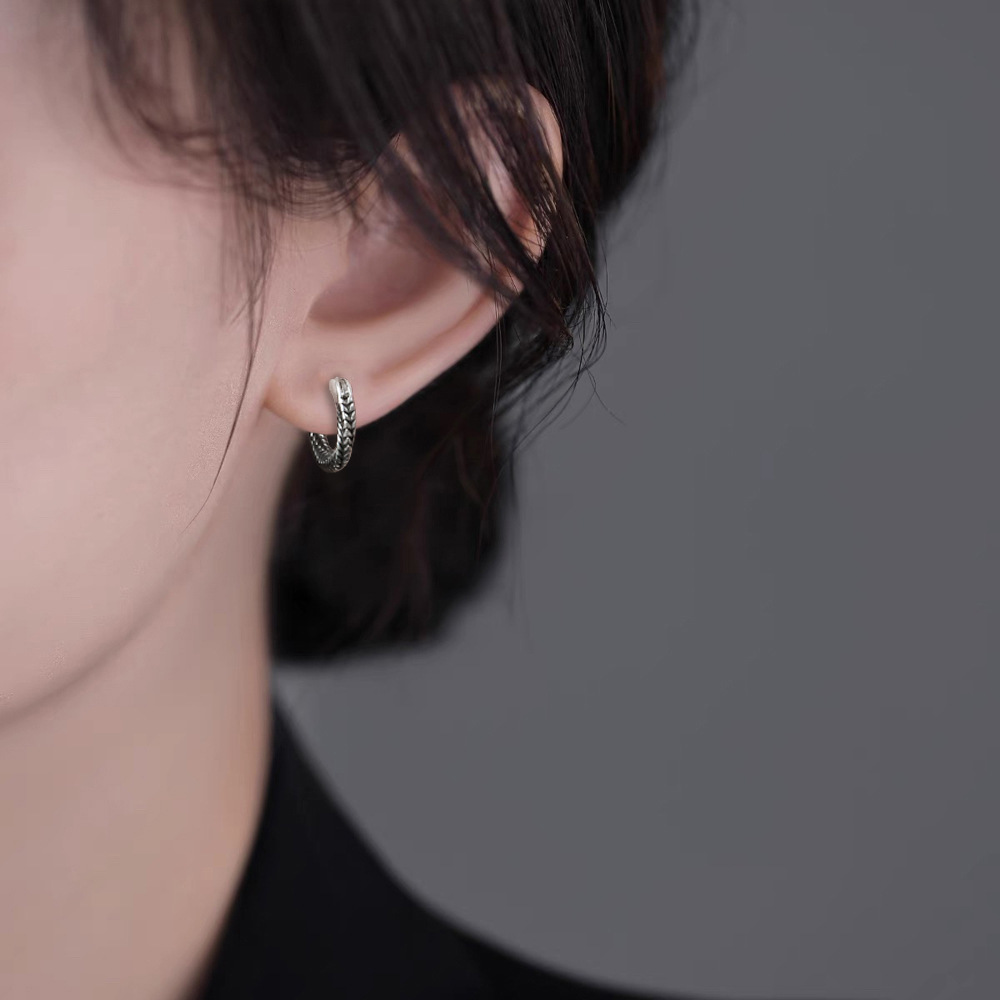 Yi Selected New Fashion Creative Round Twist Rope Earrings Distinctive Trendy Men's Street Distressed Retro Snake Bone Twist Ear Buckle