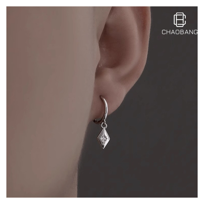 Diamond-Shaped Earrings for Men, Trendy Accessible Luxury Niche Design, High-End Geometric Earrings for Women, Personalized Elegant, Retro Men's Earrings