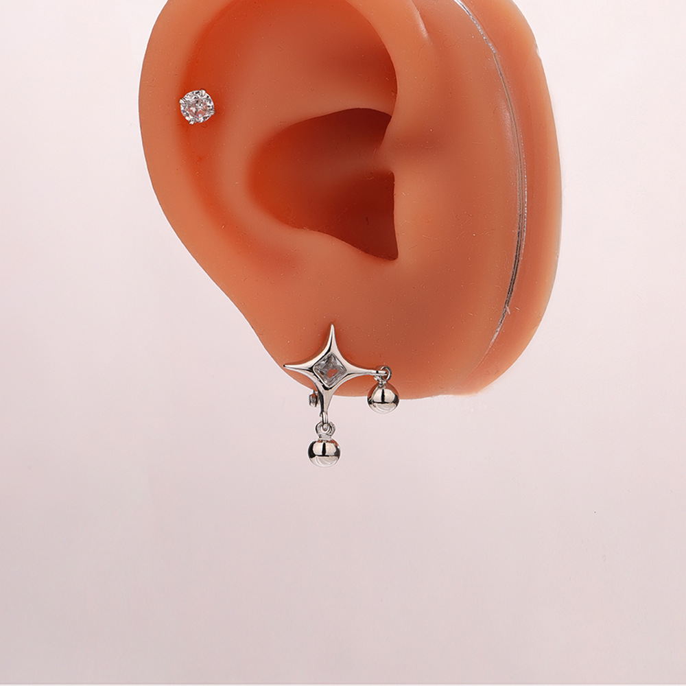 Four Mans Star Ear Ring European and American Foreign Trade Round Bead Water Drop Earrings Trendy Men's Hot Women's Hip Hop Diamond Cross Star Ear Buckle